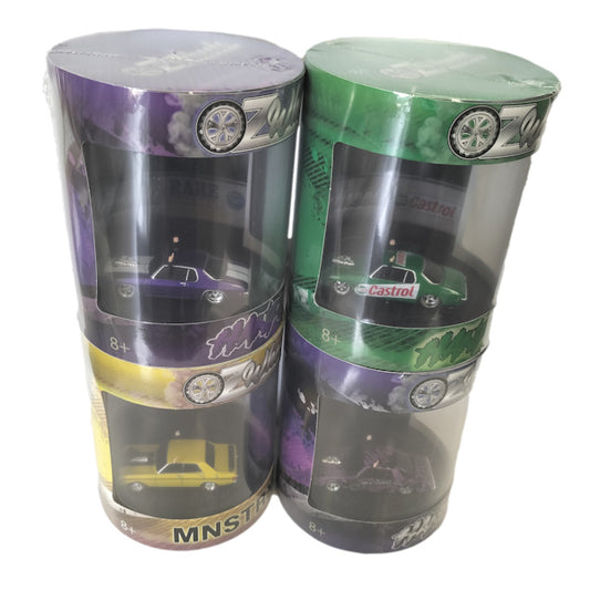 1:64 Oz Wheels Skid Cars in Cylinder set of 4